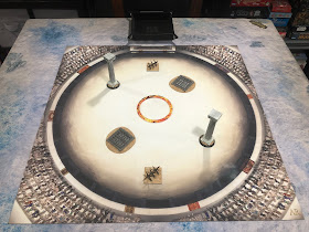 We also played a new scenario called 'Duellum' where we both had to start with a gladiator in a 5" duel zone in the center of the arena. No one else could enter the duel zone until one of the gladiators was killed or pushed out of the arena. In the center of the arena, it was 'Septimus' for the Ludus Magnus and 'Aquila' for Legio XIII.